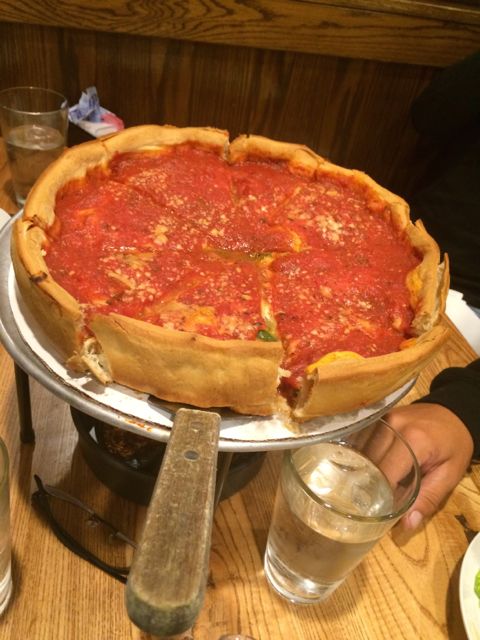 After I got settled into my room, the emails began flying around about who was there and what people were doing for dinner. Since I hadn’t budgeted time for sightseeing, my only goal, outside of setting a new PR in the marathon, was to eat some genuine Chicago deep-dish pizza. So I connected with some teammates who were on the same dinner schedule and we walked to Giordano’s.