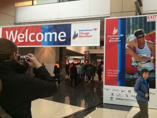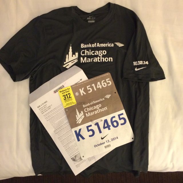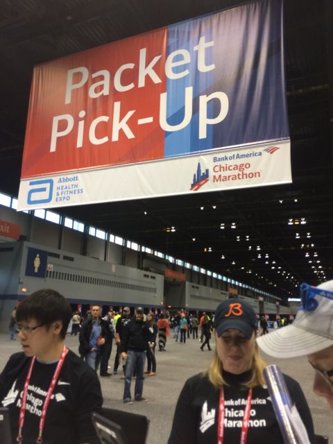 Everything was so well organized, it was amazing. When I walked up to this Packet Pick-Up sign, the woman on the right scanned the QR code on my phone (which was integrated with Apple’s Passbook app!) and told me which line had my stuff. In the ten seconds it took me to get to that line (which only had one person in it), my stuff was already waiting for me. Pretty impressive. Wish I could say the same for the rest of the expo, but I guess there’s only so much running stuff you can cram into an expo hall before it all starts to look the same. I bought a Nike Chicago Marathon long-sleeve t-shirt because the official race tech tee was pretty boring.