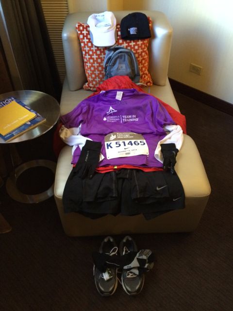I woke up slightly before my alarm went off, but not enough to even think about trying to fall asleep again. So I turned on the TV and studied the course. It looked like there were two significant uphills: one around Mile 7 and another around Mile 11. Of course, after running 18+ miles, anything feels like a significant hill.