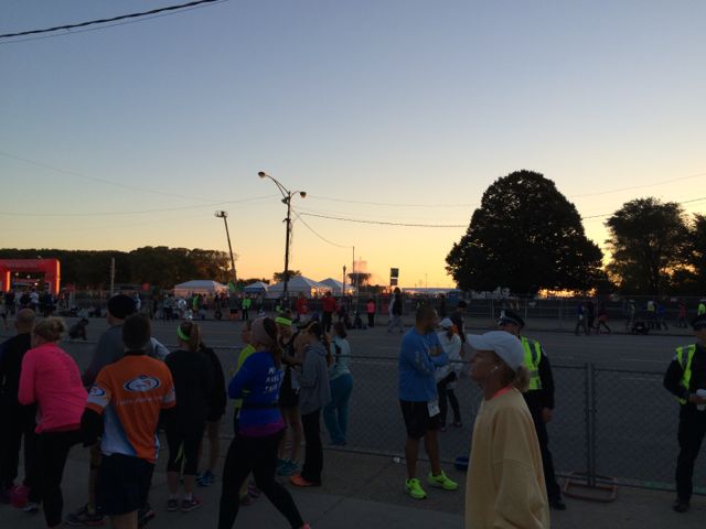 Gradually, the sun came up and we got a little warmer. Then the gun went off and the elites were on the course. 58 minutes later — when they had reached the 11-mile mark — I crossed the starting line.