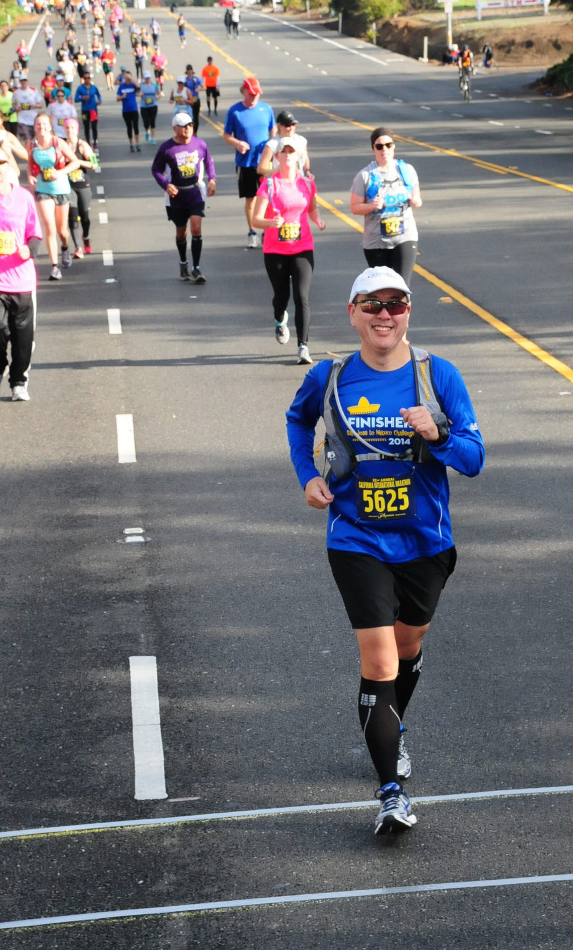 By now, I was in the home stretch. Several TNT coaches ran with me to check on me, including Coach Tim. We had a nice chat (from what my run-addled brain can remember). I was in really good spirits even though I knew I wasn’t going to achieve my goal of breaking the 5:30 mark. Furthermore, I was prepared for the finish, thanks to Coach Jenny.