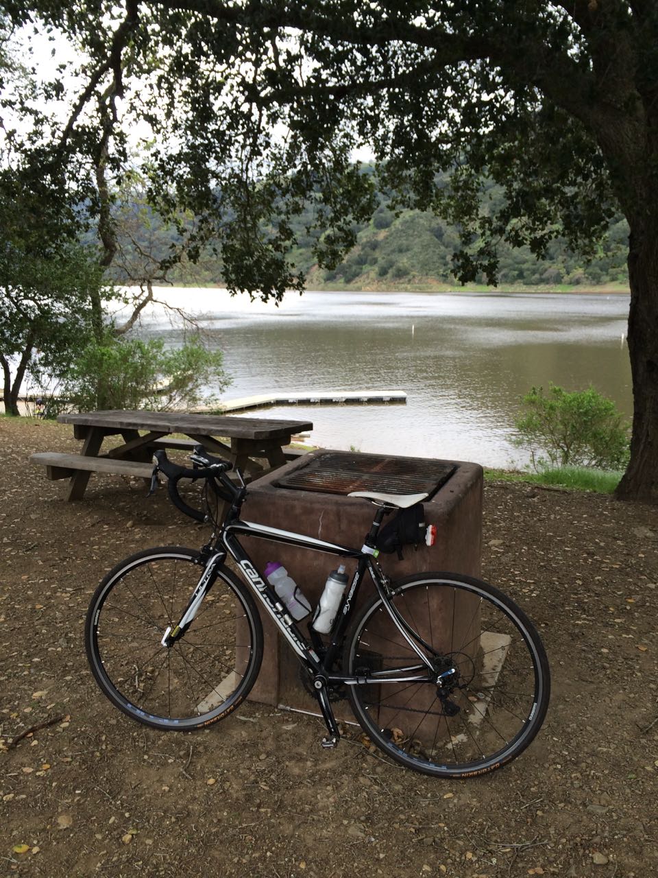 Having slacked off last weekend in favor of a 9-mile run with Paulie, I got back on the bike Saturday and headed for Gilroy. I wanted to check out Coyote Lake and the climb up to the Gilroy Hot Springs. The Tierra Bella route climbs this road and circles southward again to Hwy. 152 — a busy, two-lane road that links Hwy 101 and I-5 — so I knew I didn’t want to ride that part by myself. But I figured that doing the climb would be good enough. Also, I needed a long day in the saddle, not too much climbing. So, going up to Coyote Lake and turning around would give me a little over 70 miles with only about 2000′ of elevation gain.